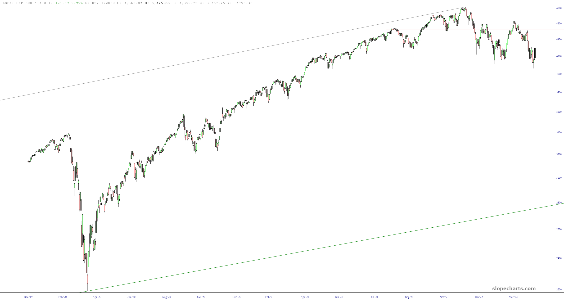 Looking at the longer-term chart, yes, it’s a relief that we’ve back off 4300 (to be absolutely precise, 4303.50, and no, I didn’t have to change that line) but what really needs to take place, God in heaven above willing, is to cut through the 4140 level in the next few days. That would provided the cinder block to the face that the bulls so richly deserve.