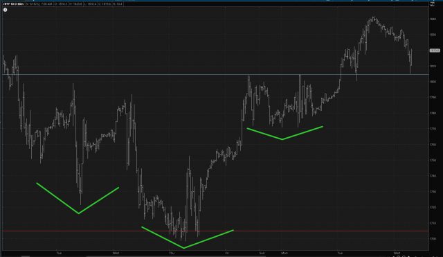WOW. The degree of “chart-friendliness” in the market is so refreshing (even if it is bullish). I was watching the /RTY crumble away, and the moment it hit one of my lines it went ROARING HIGHER: