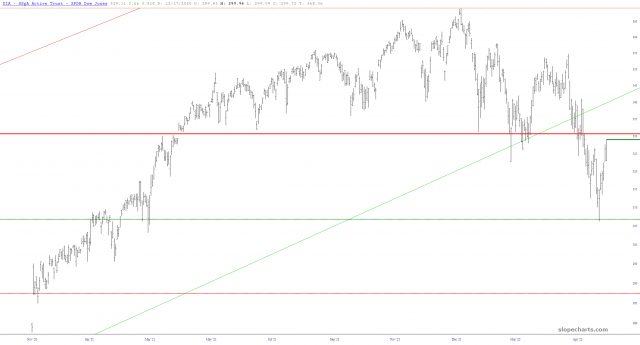 My view is that all this is going to accomplish is that the surviving twelve bears on the entire planet will just have another opportunity to short at good prices. There may be more upside in some sectors, but there are definitely some ETFs where I can point to logical, and major, resistance levels, such as the DIA “diamonds”………