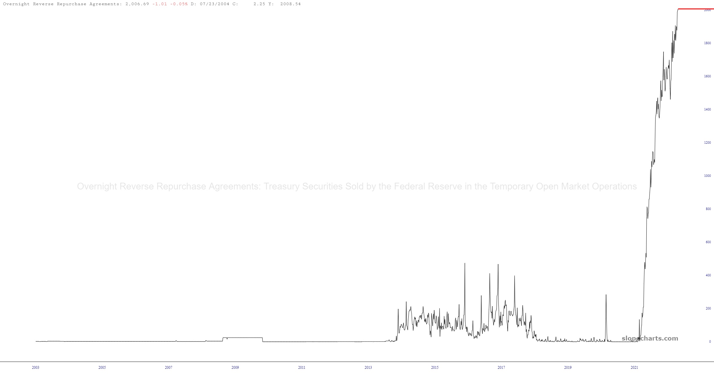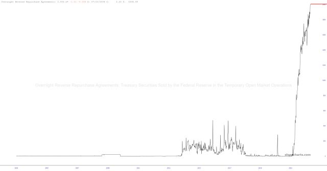 There is ONE thriving chart, however, which is the Federal Reserve’s REVERSE REPO, which has exploded from virtually nothing to over TWO TRILLION DOLLARS EVERY NIGHT, but I’m sure it’s nothing.