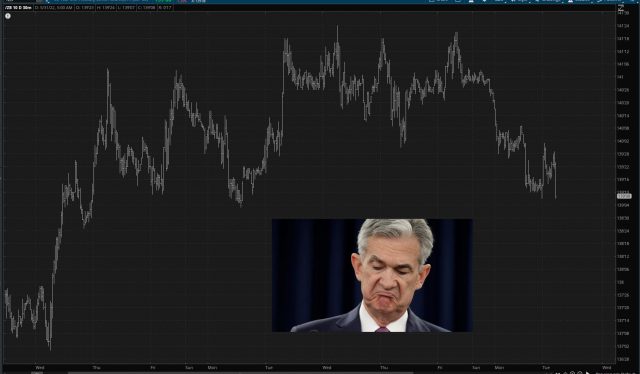 There isn’t a single trading morning that starts without me holding my breath to see what the first quotes of the day reveal, but this morning was particularly anxiety-laden, considering the consequences of the retracements about which I’ve written endlessly and the nauseating strength of the bull run over the past six trading days. How pleased I was to see my favorite color, red, slathered all over the screen. It was particularly delicious since, of course, futures had been so annoyingly (but appropriately) strong on Sunday, with the NQ flying higher by another triple digits. As of this moment, all of that doe-eyed, Fed-sucking bullish delusional thinking has been laid waste.