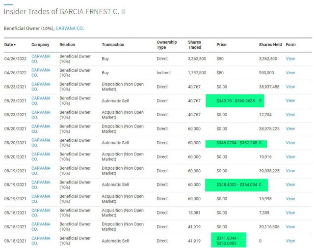 The lad above is the spawn of a convicted felon. The Garcia clan somehow pushed CVNA to unbelievable heights (and had the world’s most obnoxious ads on YouTube), got the HELL out of their holdings, and are now laughing all the way to the bank. Here’s just a small sample of the kind of dumpage that convicted felon Ernest Garcia was doing when the stock was literally thousands of percent higher than it is right now.