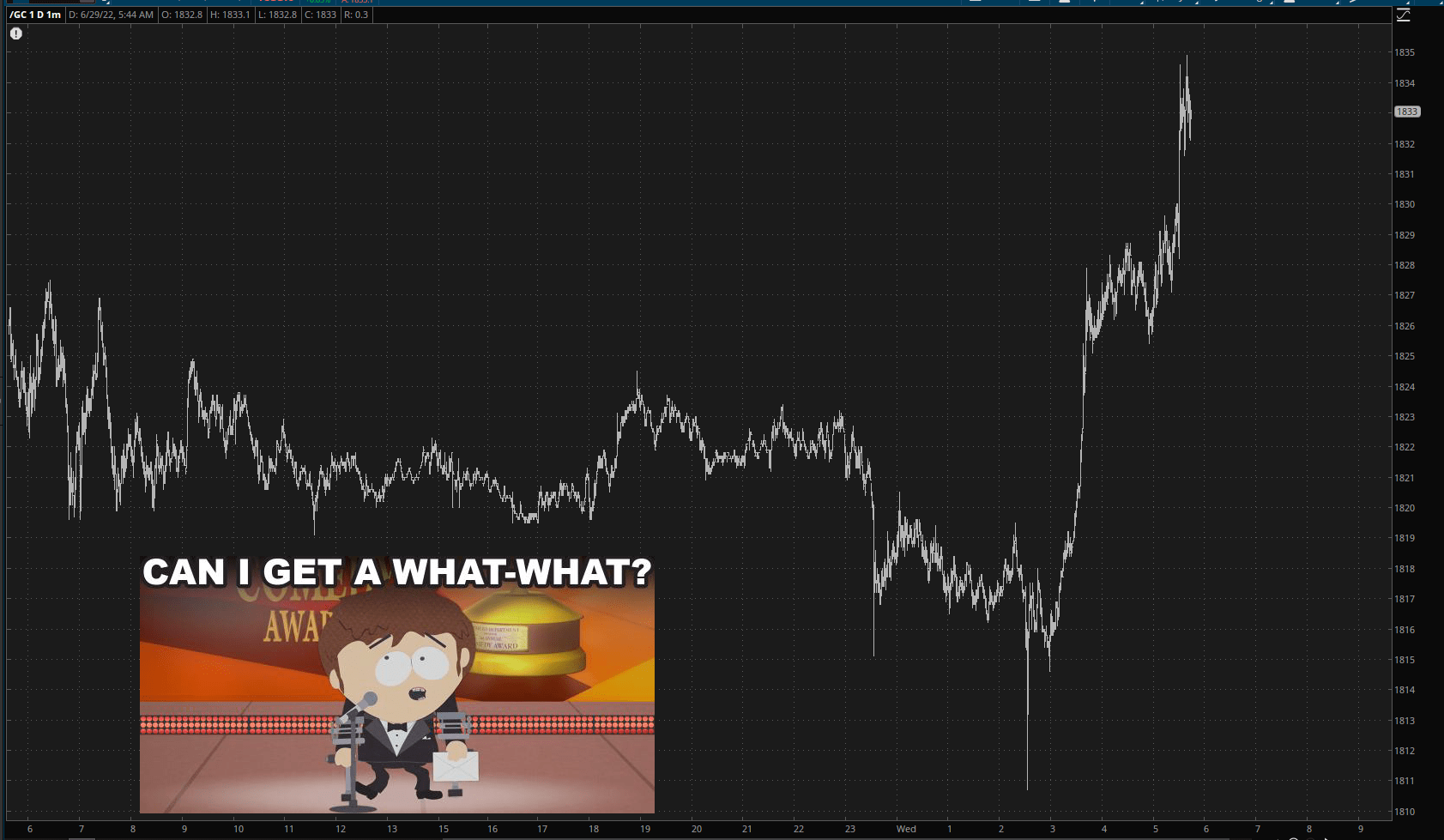 I’d also note in passing that, for the first time since Millard Fillmore was in office, gold is actually UP.