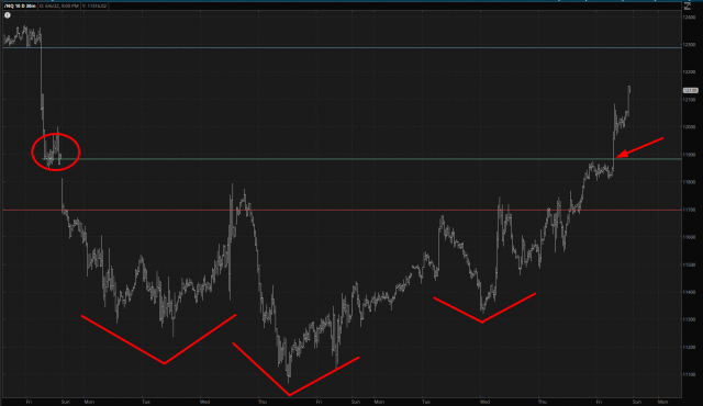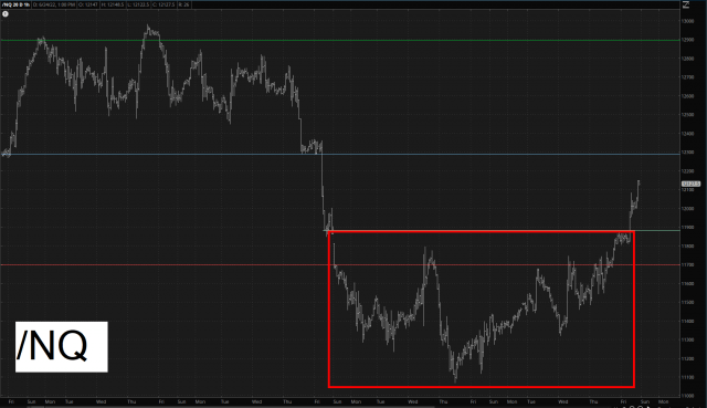 Once those horizontals were cleared, the bulls totally dominated. Just take a look at this bullish base on the /NQ. It’s a pretty clear shot up to that next horizontal.