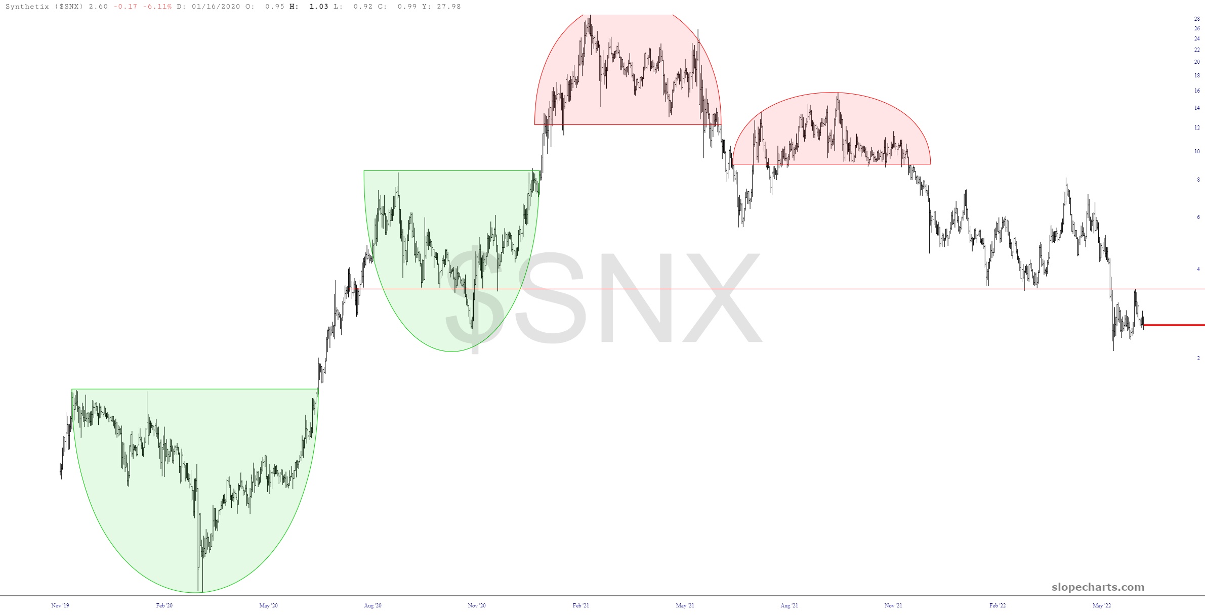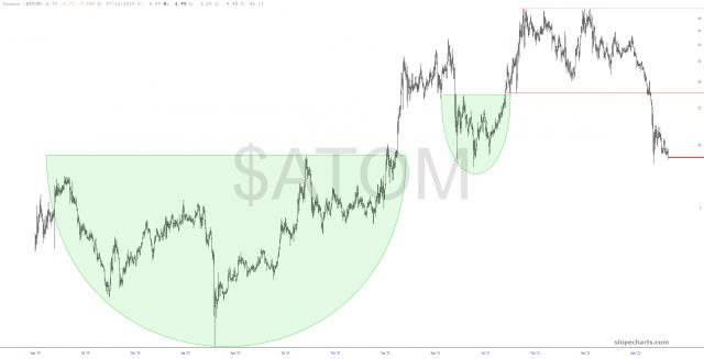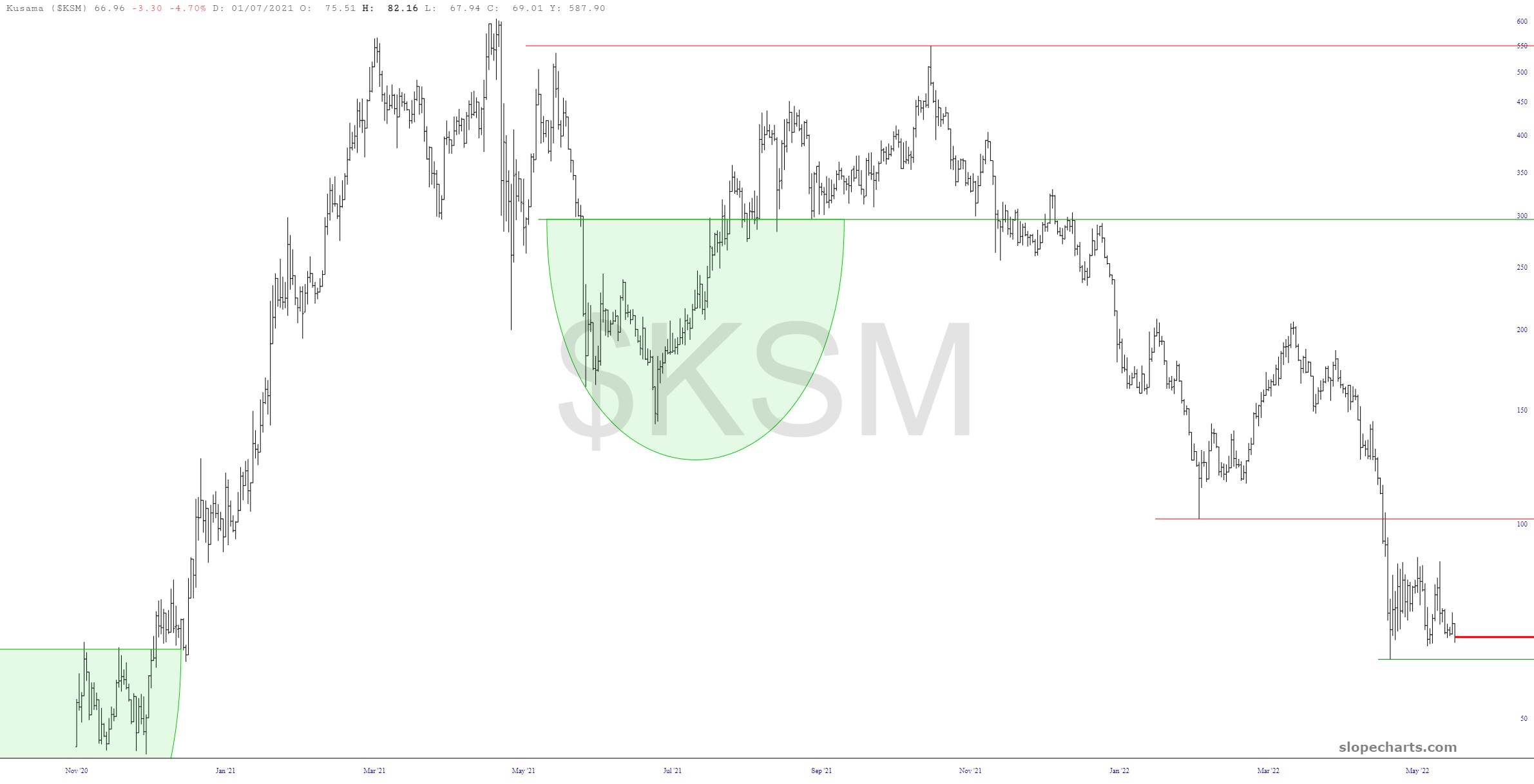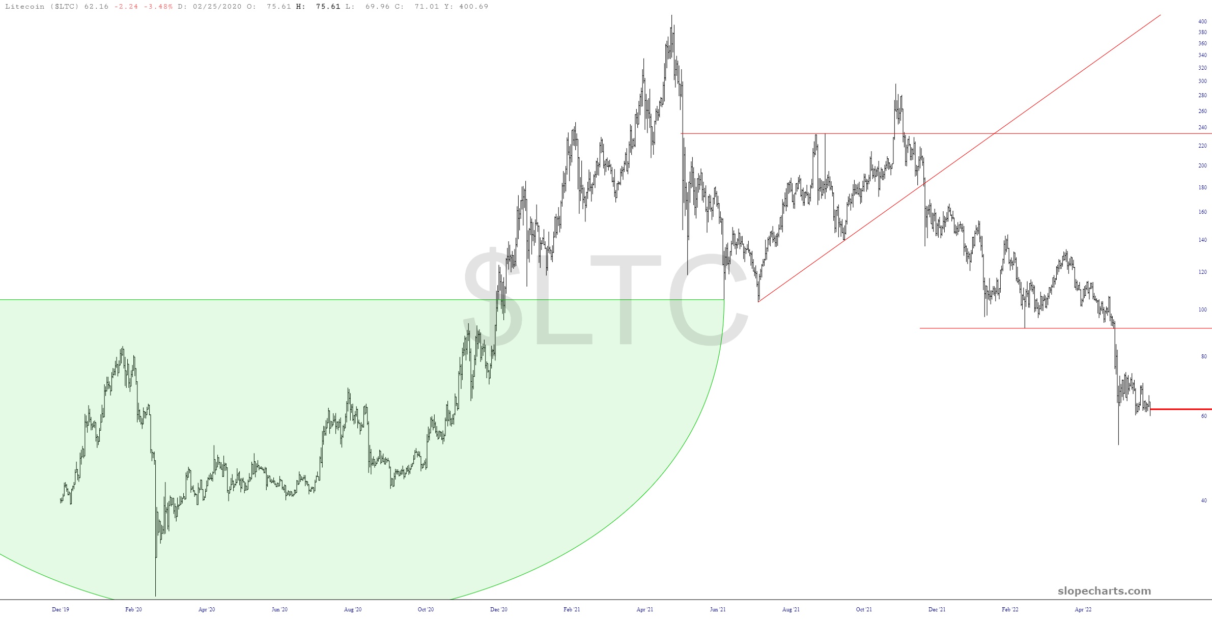 As recent posts have shown, I’m really hung up on Ethereum breaking $1700 so this bear market can have its next leg down. I just want to be clear that $ETH isn’t some freakish weakling. The entire crypto space has been blown to smithereens, and frankly $ETH and $BTC are the strong stalwarts, having lost “only” about 50-60% of their value. Take a look at these major al-coins and see how much core damage has been foisted upon these charts……….