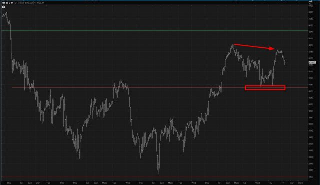 1. The high yesterday was a lower high compared to the 4200+ achieved days ago;