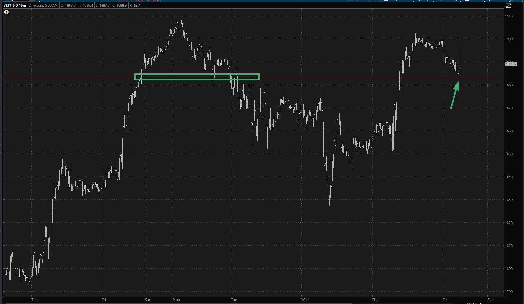 As for the /RTY, it is the only one on the bullish side of the Fibonacci. That level is 1883 and it, too, must be broken.