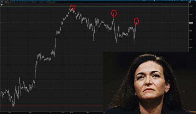 The /NQ is up hundreds of points, although at the moment it at least has hung on to its series of lower highs. Still, though, today’s action is really, really bothersome to me. What on Earth is going on beneath the surface of this price action?