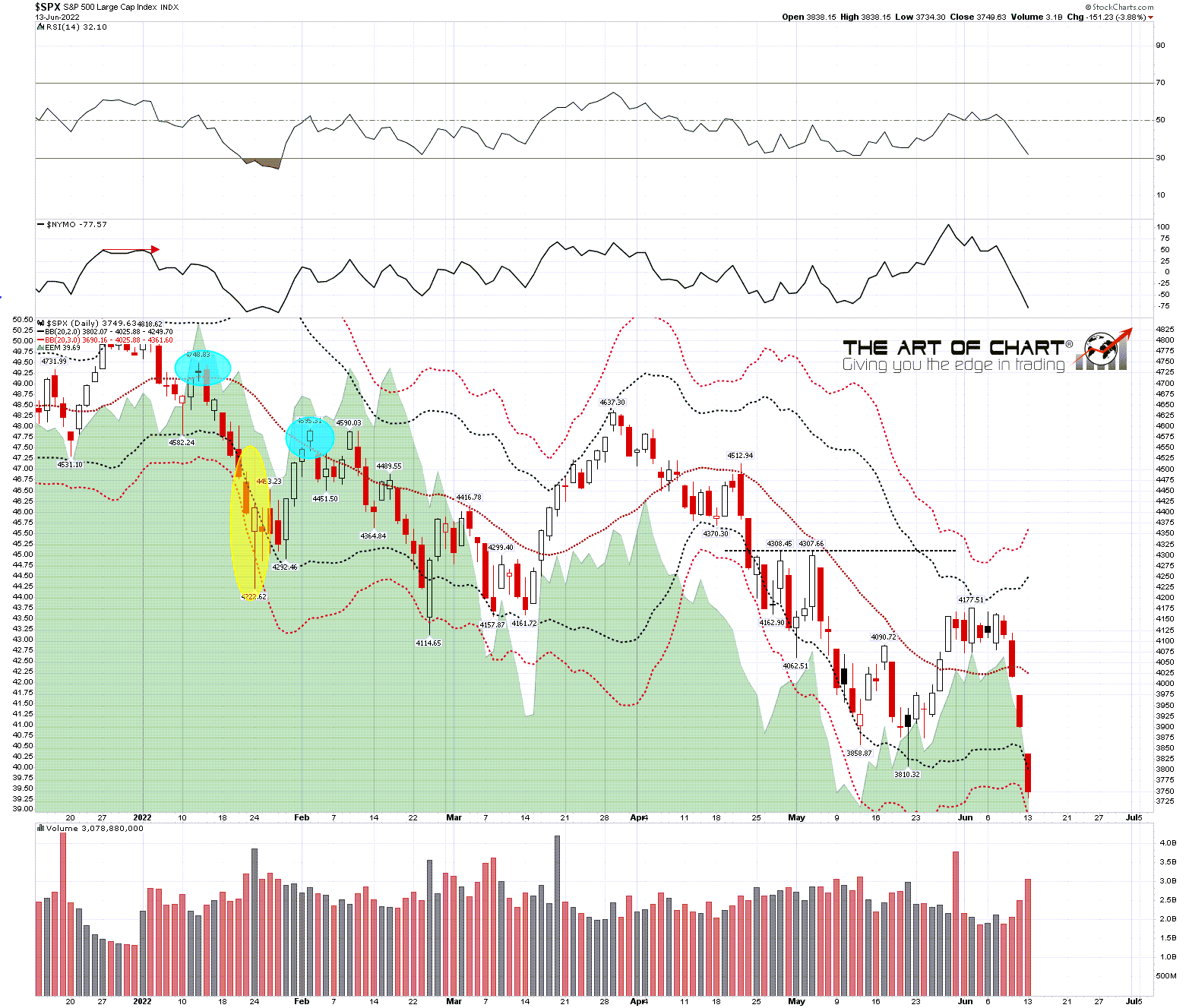 SPX daily BBs chart: