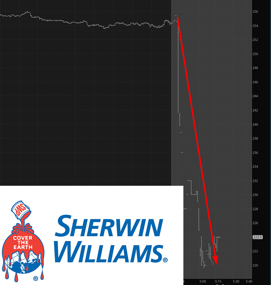 The top stay intact, however, and about a week ago I re-entered my SHW puts. The earnings came out this morning, and as the news indicates, they were a big miss.