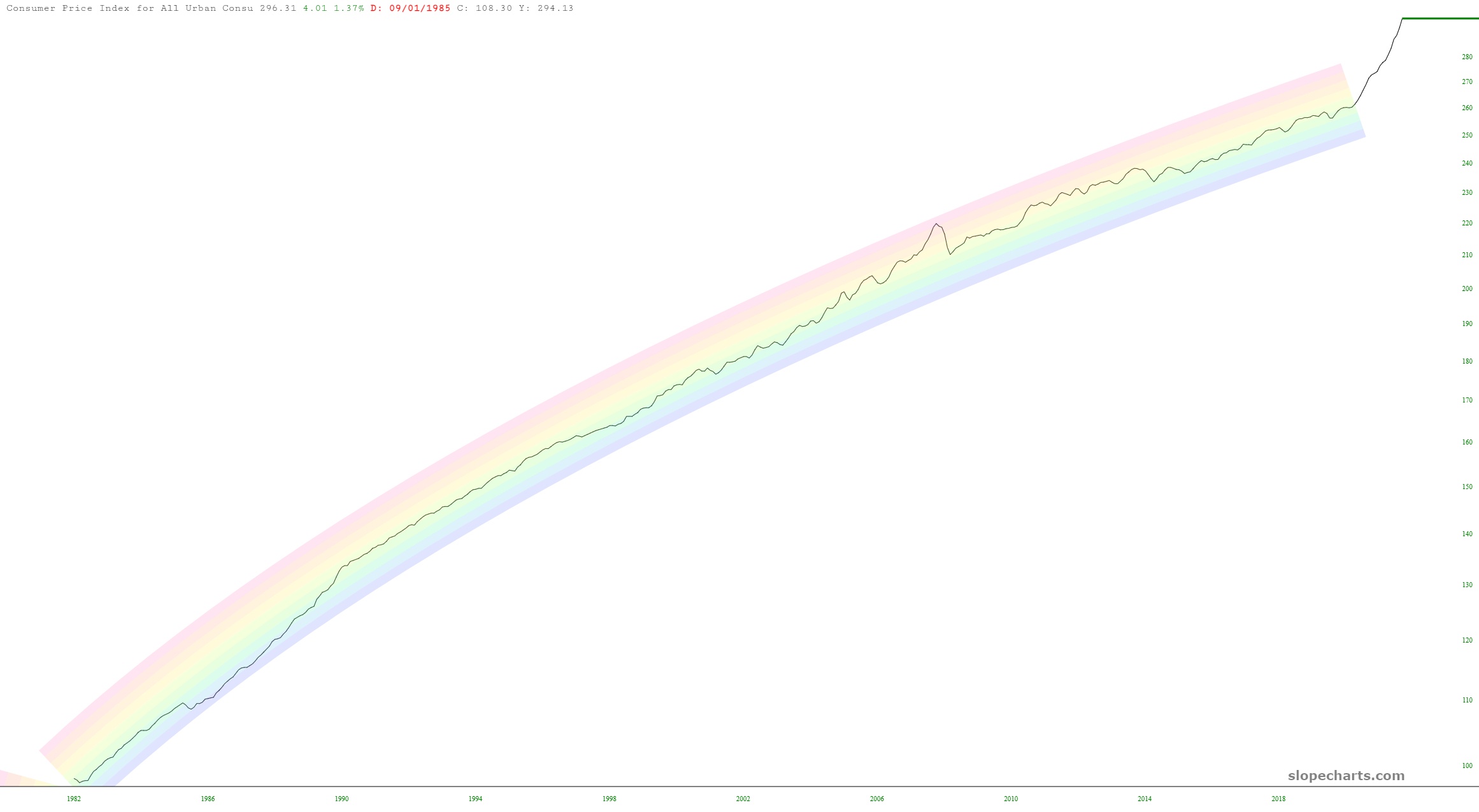 This is where a bunch of my pissing and moaning comes from about civil salaries. When I see the police and firefighters in Palo Alto are making $200,000 per year, to my mind, that is just outrageous, because to me that’s the salary of a senior executive when, in fact, it’s probably just a decent middle-class income. What I’m trying to say is that, over the decades, the drip, drip, drip of even small inflation truly adds up to something enormous.