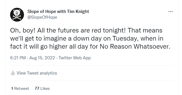 When times are good, I lament that my virtual portfolio isn’t real. When times are bad – – or, like now, absolutely horrendous – – I am relieved it is just a bit of fiction. Here we see my “Balls to the Wall” loss of nearly half a trillion dollars. That is Bezos-level of cash!