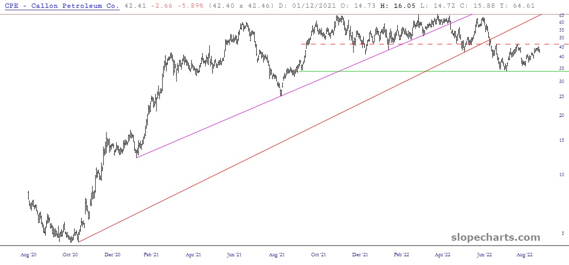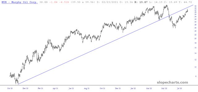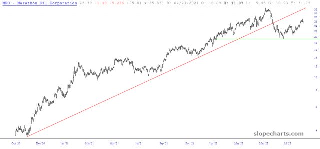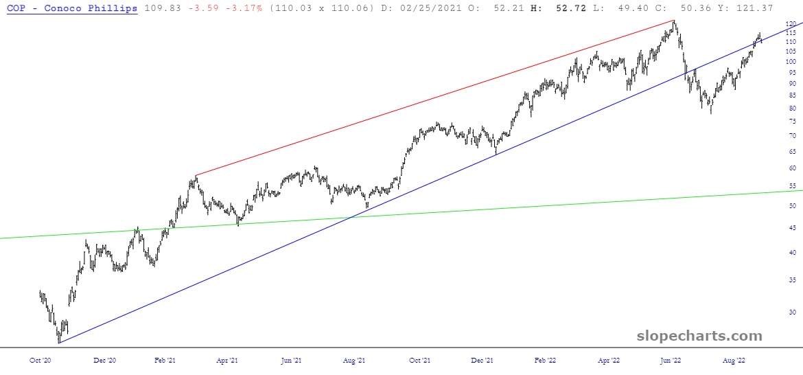 At long, long last (OK, maybe a few days…….) freakin’ energy stocks are finally breaking down. God almighty, that took long enough.