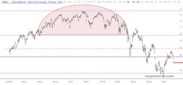 IEFA – global equities have been following a steady series of lower lows and lower highs. This is a beautiful chart.