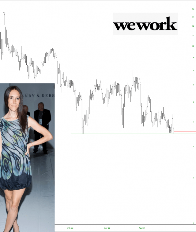 But seriously, folks, if you look at the garbage stocks like CVNA and LYFT, they are WAY WAY WAY higher than they were just a few weeks ago. The odd man out (see above) is WeWork, which is nearly LIFETIME LOWS and is at the cusp of a plunge into the abyss.