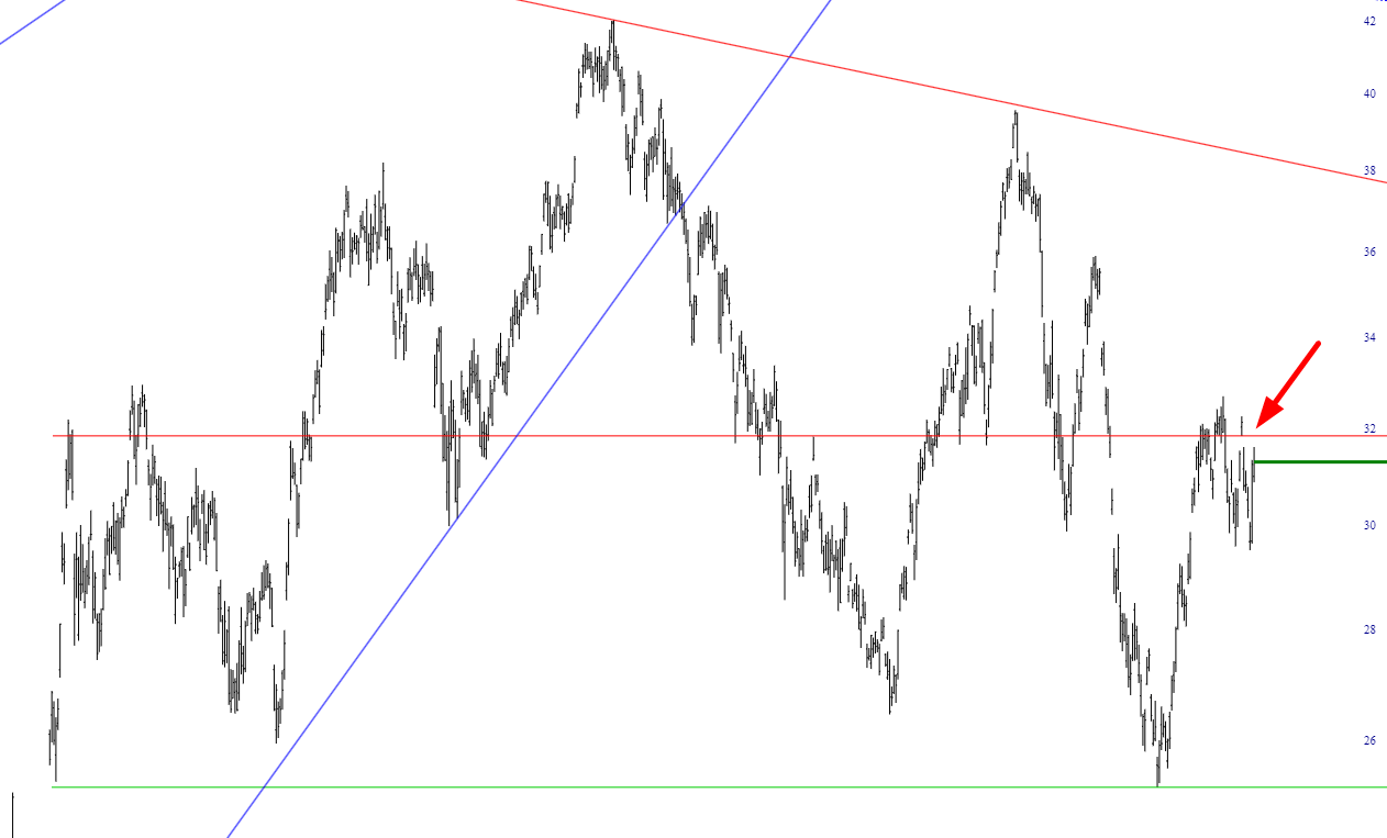 I have, as some of you know, been beating myself up endlessly for what it surely one of my biggest screw-ups of the entire year, which was dumping my IYR puts (now up 250% from the dumpage). I intend to heal my soul with another trade which, as of now, looks idiotic, but I intend to not wimp out on. Specifically, Brazil (symbol EWZ). For reasons quite beyond me, this has been strong lately, and we got quite close to this gap.