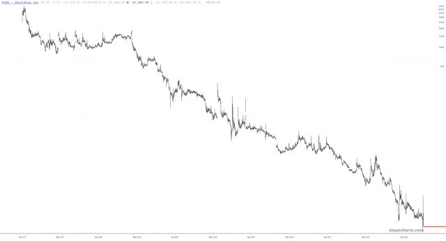 Got that? Oh, the stock has gone from about $47,000 a share (split adjusted, obviously) to about $14. Booyah! That’s almost good enough for Cathie Wood to buy!