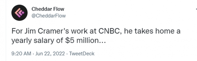 It’s common knowledge that 2022 has been an excellent demonstration of Jim Cramer’s stock-picking prowess. Doing the exact opposite of Cramer has become a high art form, and even a brief glimpse inside the Replies section of Cramer’s Twitter feed will give you a good sense as to what the public thinks of the man (although, inexplicably, he has nearly two million followers).