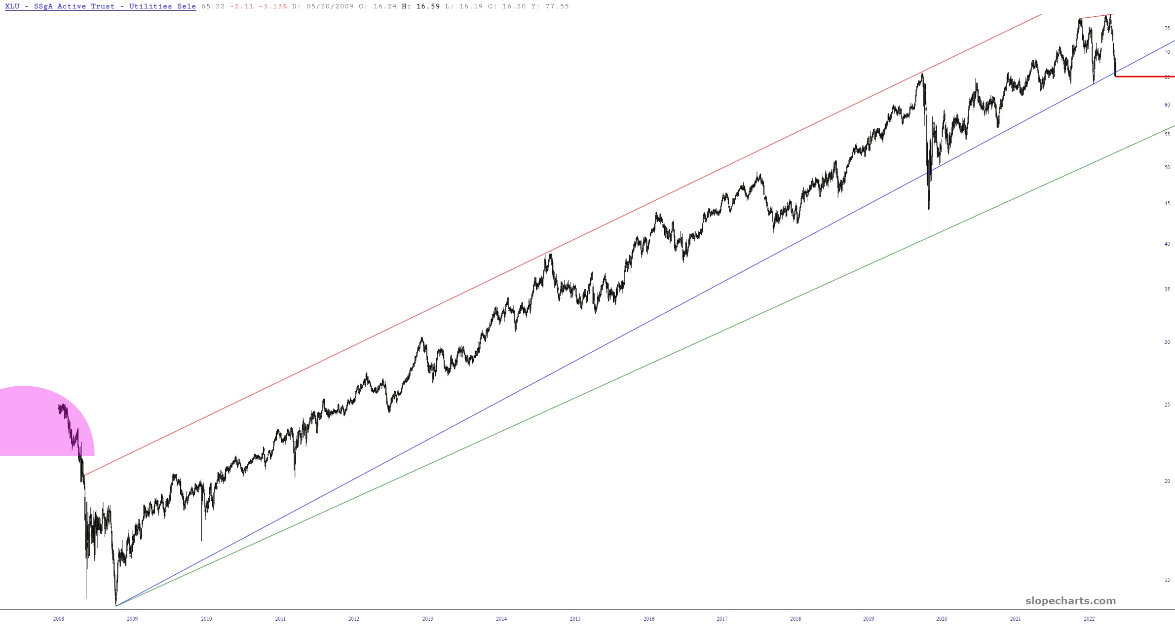 Disconnected Utilities By Tim Knight - 3 years ago (06, Oct 2022 11:25:41 AM) I notice that the Dow Utilities has broken its long-term trendline. That seems like a fairly big deal. Here is the same index all the way back to the Financial Crisis low. « Prior Next » https://slopeofhope.com/2022/10/disconnected-utilities.html Disconnected Utilities In order to comment on this blog, you must have JavaScript installed and enabled. « Prior Next »