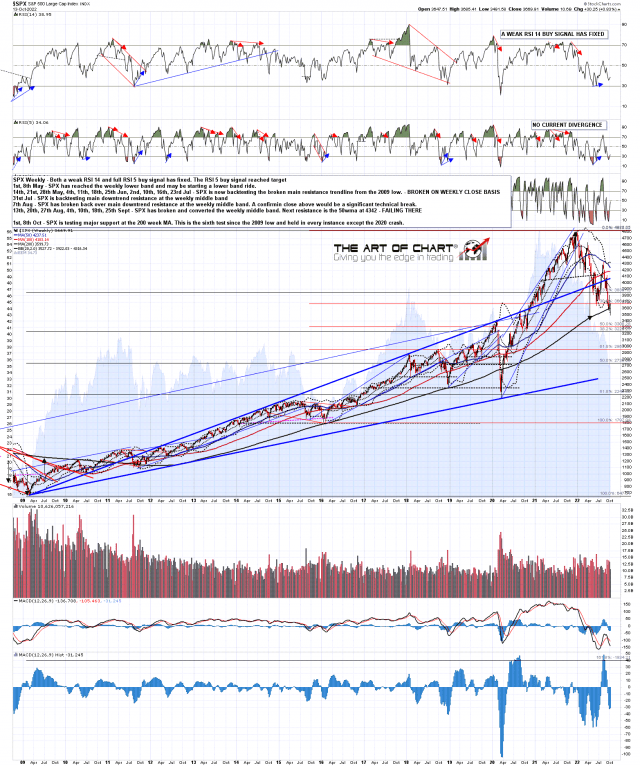 In my last post I was looking at the possible hard fail setup on SPX, NDX, IWM and Dow if the inverted H&S patterns that had broken up failed on moves back below the right shoulder lows on those patterns. On that fail there would be targets back at the retests of the 2022 lows and the last of those four low retest targets were hit at the low yesterday.