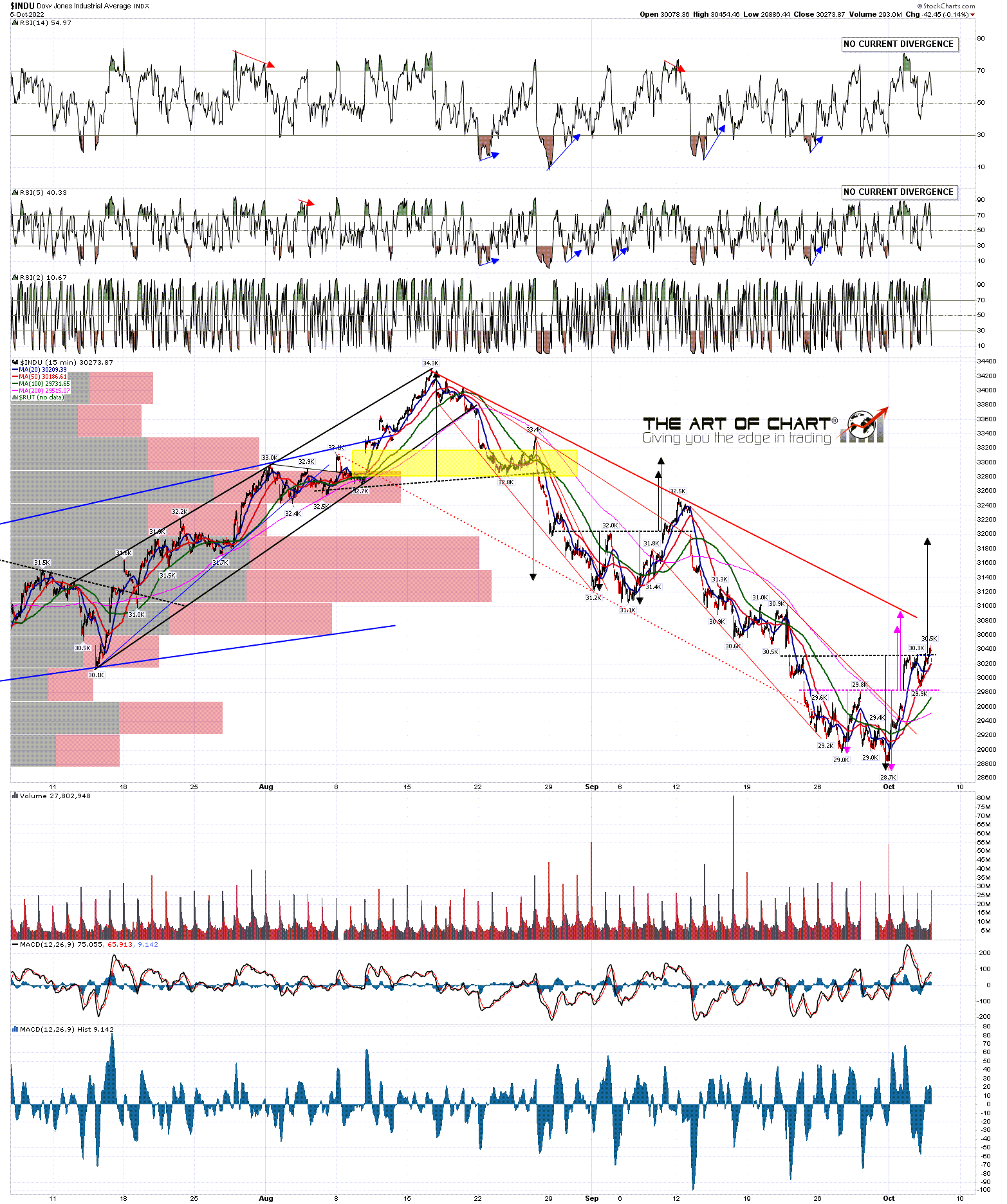 Dow has been leading this market from a pattern perspective and there is a very decent looking IHS there too that has broken up with a target in the 31950 area.