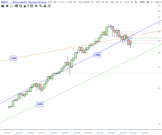 Three months ago, price lost support of a 1986 uptrend and the 1999 high uptrend.