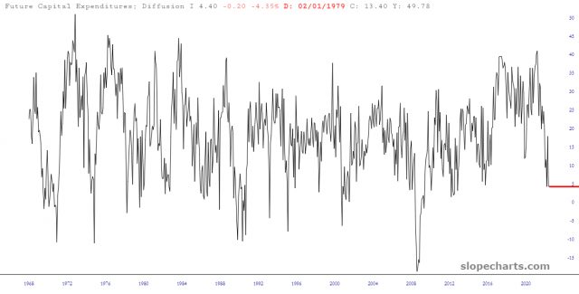 The Director sends me interesting tidbits from time to time, and one item he sent last time pointed out how the Philadelphia Capital Expenditures chart (with the easy-to-remember symbol FR:CEFDFSA066MSFRBPHI) is an excellent predictor of future corporate earnings. Simply stated, stocks are going to get crushed next year as earnings crumble. Booyah!