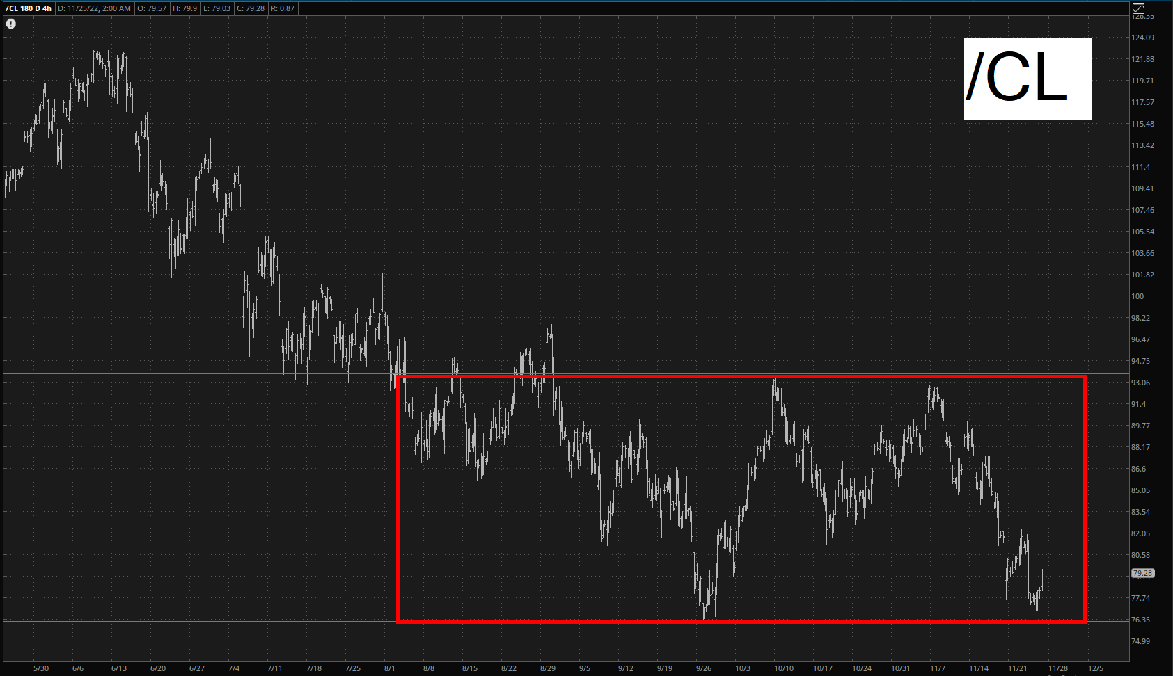 One of the stronger markets right now is crude oil, but only because it is so low in its range.