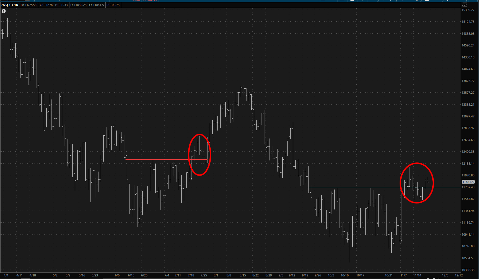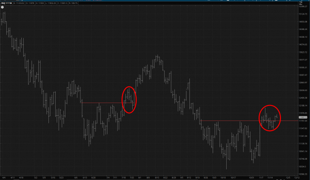 The /NQ is actually managing to be red as of this moment, and that red horizontal line is what I am watching.