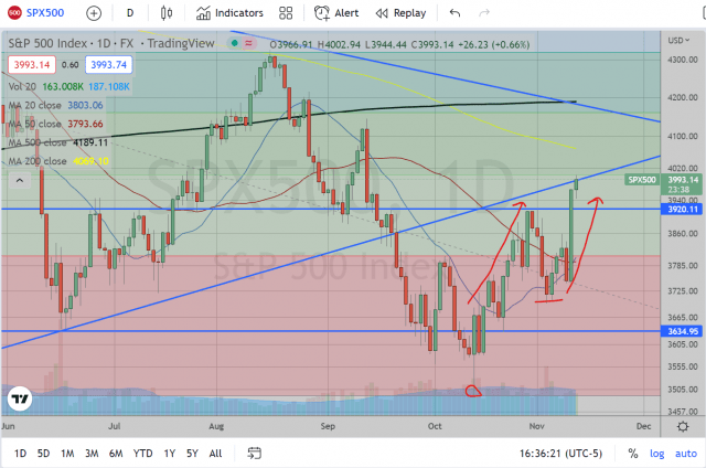 What I mean is, I have been bearish all year long. Overall, this was the right attitude. However, there was a noticeable change on October 13 kicking off this rally. After that, my executions were awful and my choice of targets was poor.