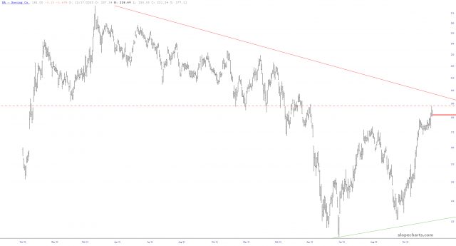 The last big corporate scandal that was big before Covid became a thing was Covid. Something about their planes dropping from the sky and their MAX engine. In any case, that got kind of buried once we all got blessed with the Covid news, but I say it’s time to short this sucker again. Here’s the right-triangle reversal pattern.