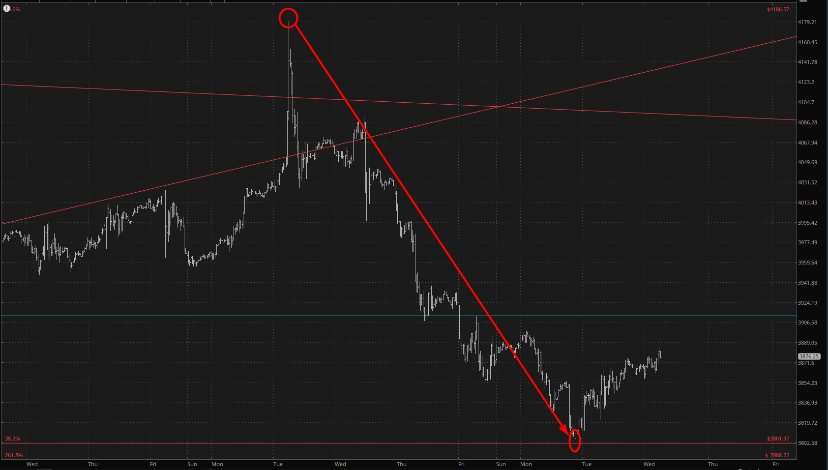 It remains remarkable to me what happened between last Tuesday and this Tuesday: an absolutely pitch-perfect traverse from one major Fibonacci to the other. That’s almost four hundred /ES points in less than a week, and in virtually a straight line. I find it comic that folks poured into the market after the based on the dunder-headed logic that lower inflation means stocks should be bought.