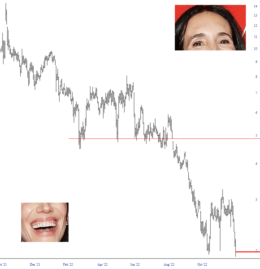 What’s also interesting (and heartening) to me is how crap stocks are beginning to act like crap again. Take Rebekah Neuman (please!) and her WeWork scam. After the October 13th bottom, it roared higher by 50% for no reason at all. Now, as God intended, it is at lifetime lows (and no doubt will be a penny stock in short order).