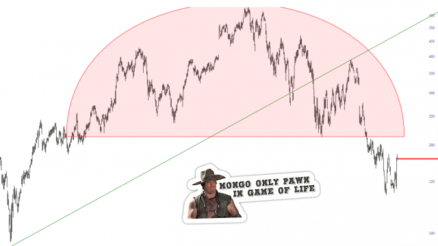 Don’t misunderstand Mongo. He may seem mean, but you don’t see him during the good times. He’s really not what he seems. So I’m not leaving him. On the contrary, I have entered a new position, this time with $200 strikes. Do with me what you must, Mongo!