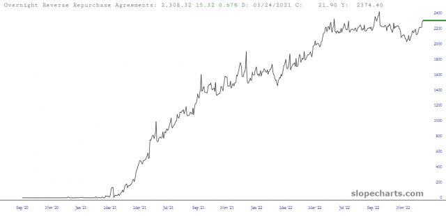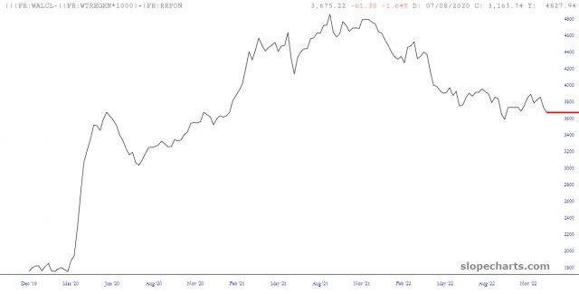 One of the (many) advantages of a Gold or Platinum membership is access to Layered Charts. One of the (many) uses of Layered Charts is what I call the “Fed Spread” which ostensibly predicts where the S&P 500 should be in a couple of weeks’ time. Here, hot off the press, are the component parts: