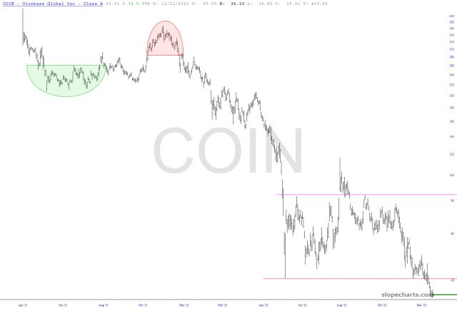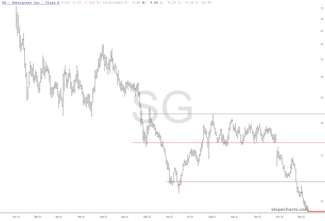 For those who went through the financial crisis, you probably heard from friends lamentations that they didn’t gobble up stocks – -any stocks at all! – – in March 2009. You could throw a dart at a list, and you’d pick a winner. Yep, probably true. But, at the time, it wasn’t so obvious, was it? You need to know when to catch the falling knife. The market is packed with charts like those below, and personally I think we’re light years from a bottom. Yet, at some point, there is going to be a smorgasbord of bargains. I just don’t think it’s here yet.