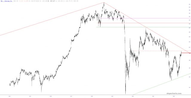 The last big corporate scandal that was big before Covid became a thing was Covid. Something about their planes dropping from the sky and their MAX engine. In any case, that got kind of buried once we all got blessed with the Covid news, but I say it’s time to short this sucker again. Here’s the right-triangle reversal pattern.