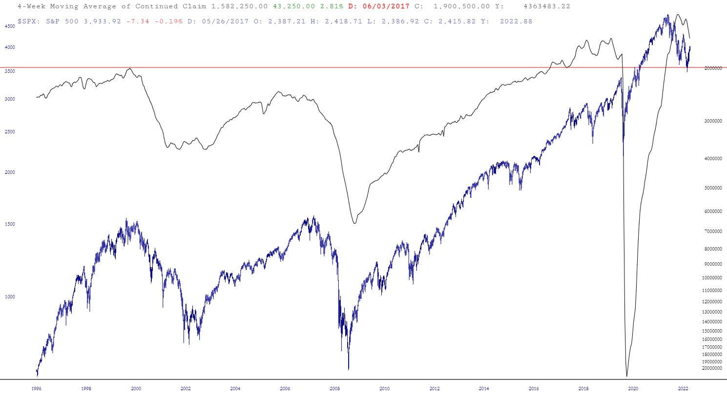 A funny correlation has popped up in the market. The S&P 500 Index is moving positively with the 4-week average of continuing unemployment claims because the QE-addicted bulls are pining for a Fed pivot.