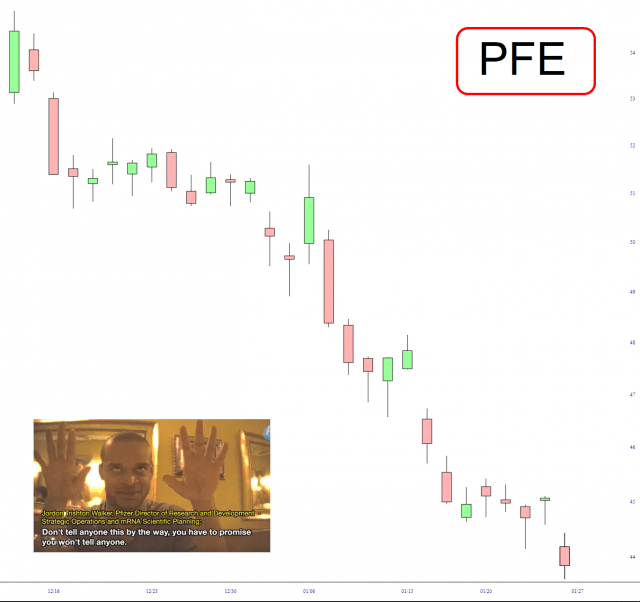 In the midst of this insane mega-rally this year, there’s one big stock that’s being left out in the cold, and that’s very-sketchy drug giant Pfizer (PFE):