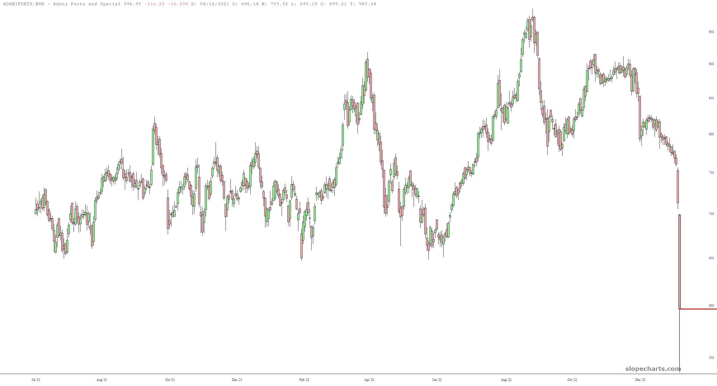 We supposedly live in a trading world in which milliseconds matter, but it seems to me that plenty of major events take eons to flow through the system until people actually do something. Take Adani, for example, the zillionaire from India with massive business interests. Hindenburg Research – – personal heroes of mine – – issued a scathing report which I reported on the day it came out here. Only now is his world completely blowing up. Good.