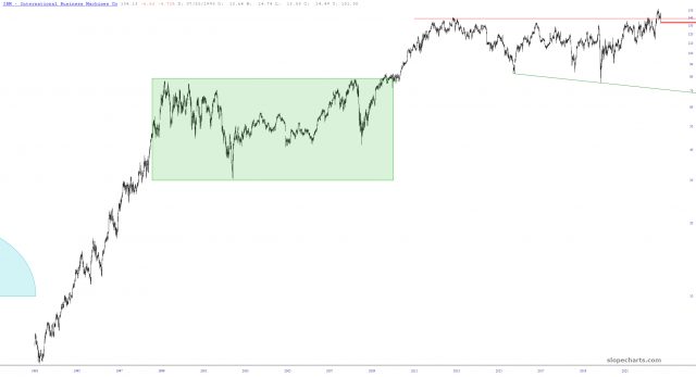 Well, if I may offer the bears a faint wisp of hope – – and God knows we need it – – International Business Machines just had a massive failed bullish breakout pattern.