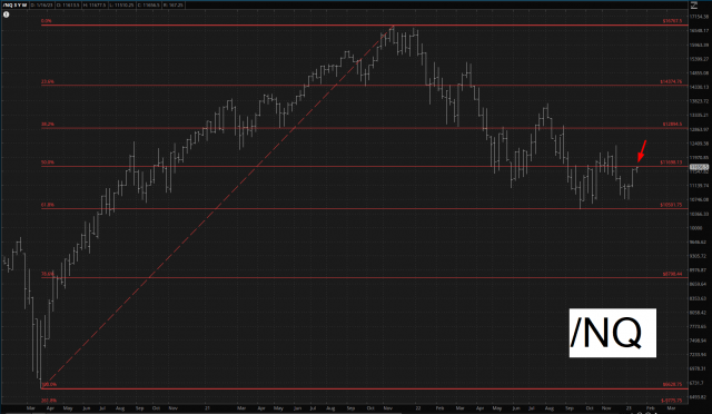 The second is that the /NQ is mashed precisely up against its 50% retracement level.