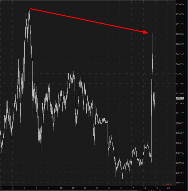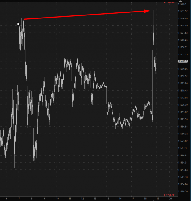 The ES also exploded, but it didn’t get to Tuesday’s high. As I am typing this, it is up 0.15%, as is the NQ. I am typing this a full 12 hours before the opening bell, so God knows what things will look like then.