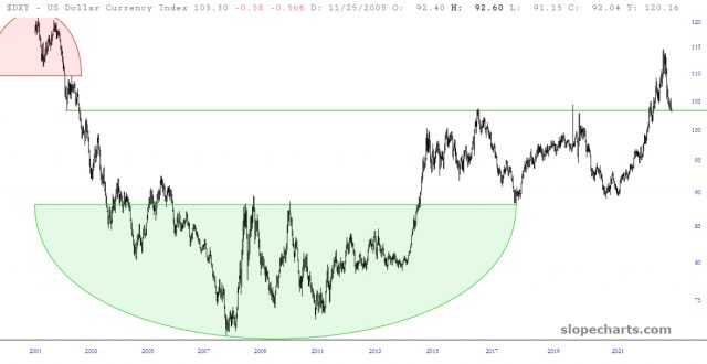 I’d like to suggest that it all depends on the dollar at this point. The $DXY, US Dollar Currency Index, looks VERY bullish right now, with an exceptionally clean cup with handle pattern. Should this thing fly higher, you’ll see metals melt away.