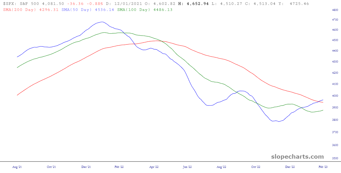 A stunning amount of digital ink has been spilled over the GOLDEN CROSS, which is the media’s favorite elementary school technical indicator. With it, they show that the 50 day moving average has crossed above the 200 day moving average, and by golly, that has always meant, 100% of the time, that a new bull market has started. I’ve seen this announcement countless times this week.