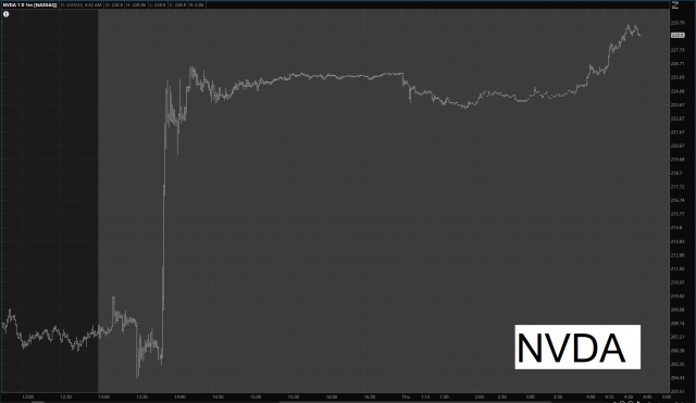 After Nvidia released their earnings yesterday, bulls celebrated the world over, and just about everything with a ticker symbol rallied, based on the notion that a niche semiconductor company focused on crypto and gaming was the basIs for the entire economy. Those gains in NVDA are holding fast (happily, the daily chart kept me far away from touching the thing).