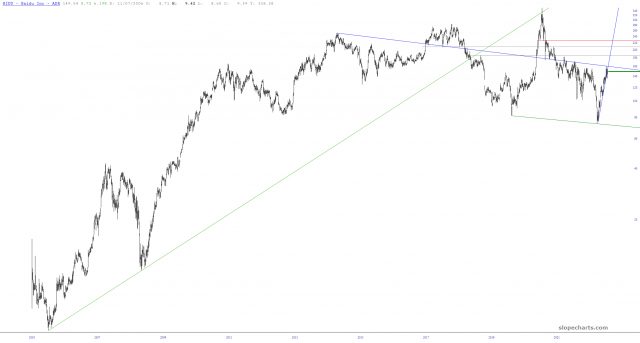 The longer-term chart looks treacherous. Anyway, I’ve required June $165 puts.