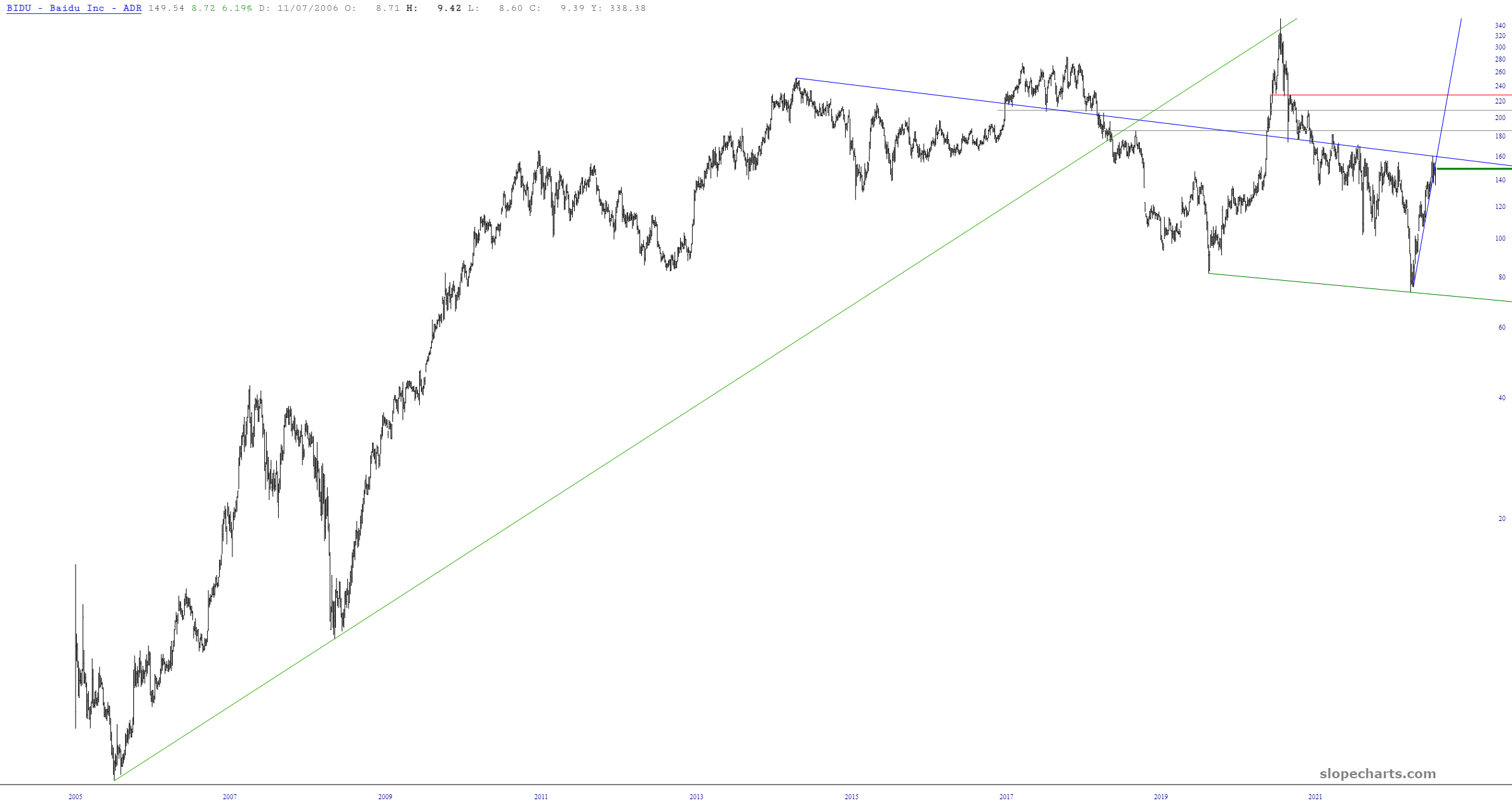 In the throes of database hell yesterday, I closed my BIDU puts at a good profit, because I knew they were reporting the next morning (that is to say, THIS morning) and I didn’t want to take the chance. Good thing, too, because the shares popped up about 9%. Looking at the chart, it seems a tasty time to get right back in again.