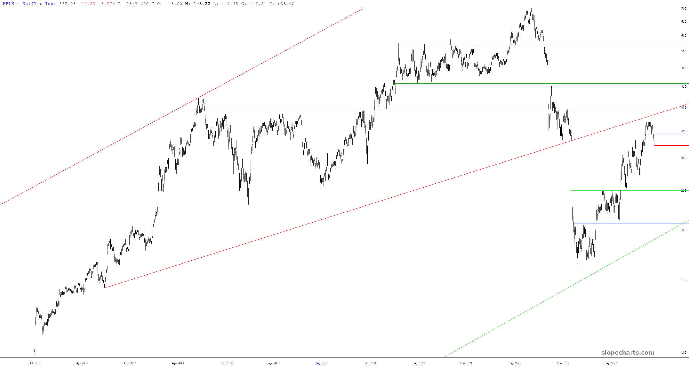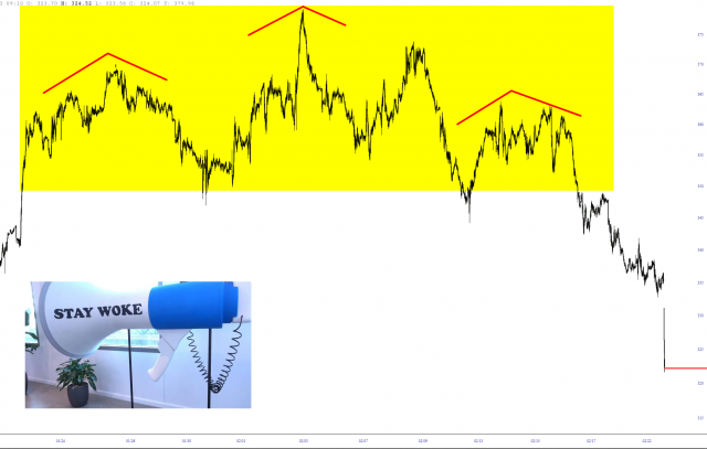 Victory lap time! When NFLX was just below $350, only a few days ago, I suggested shorting it in this Premium members post. At the time, the stock looked like this.
