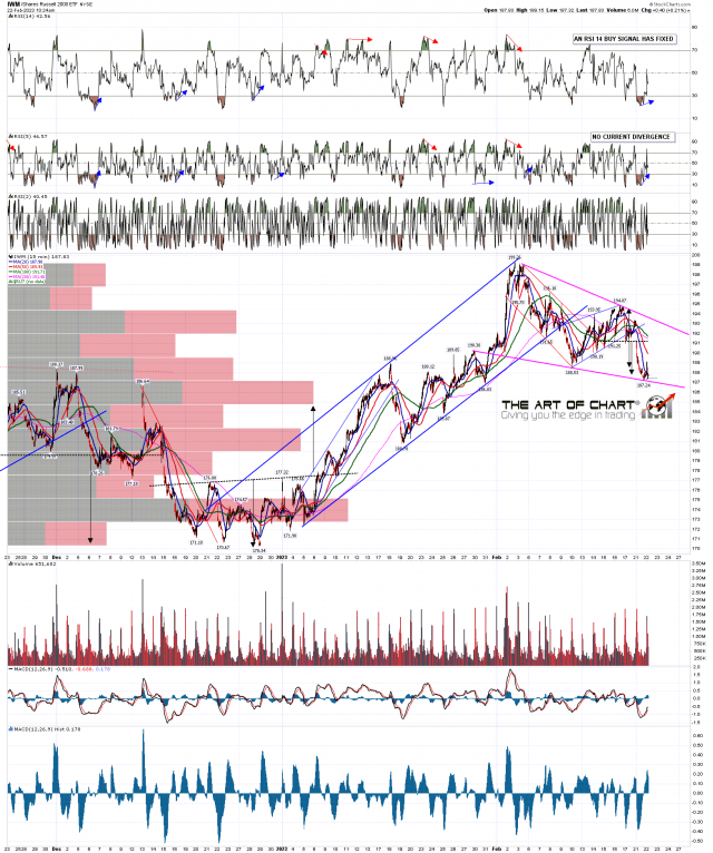 This morning though that channel broke, leaving me with only one perfect bull flag setup on IWM, though all of the moves on the US equity indices from the 2023 highs have a flaggy look to them in the way they have formed. We will see.